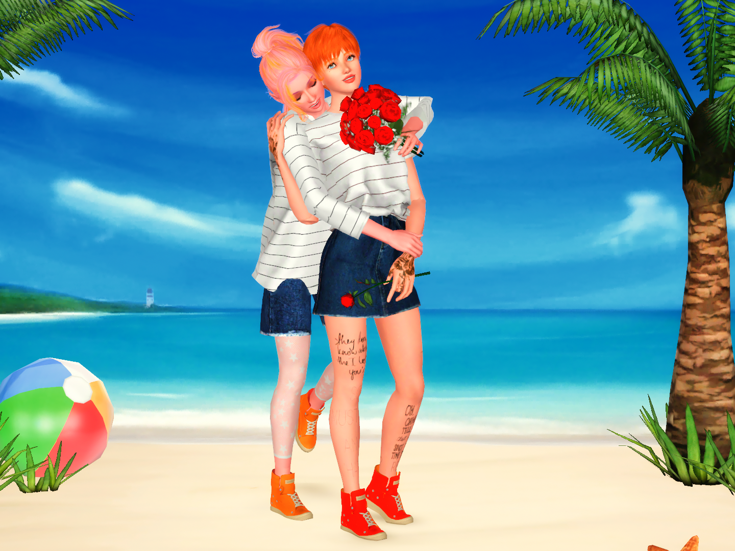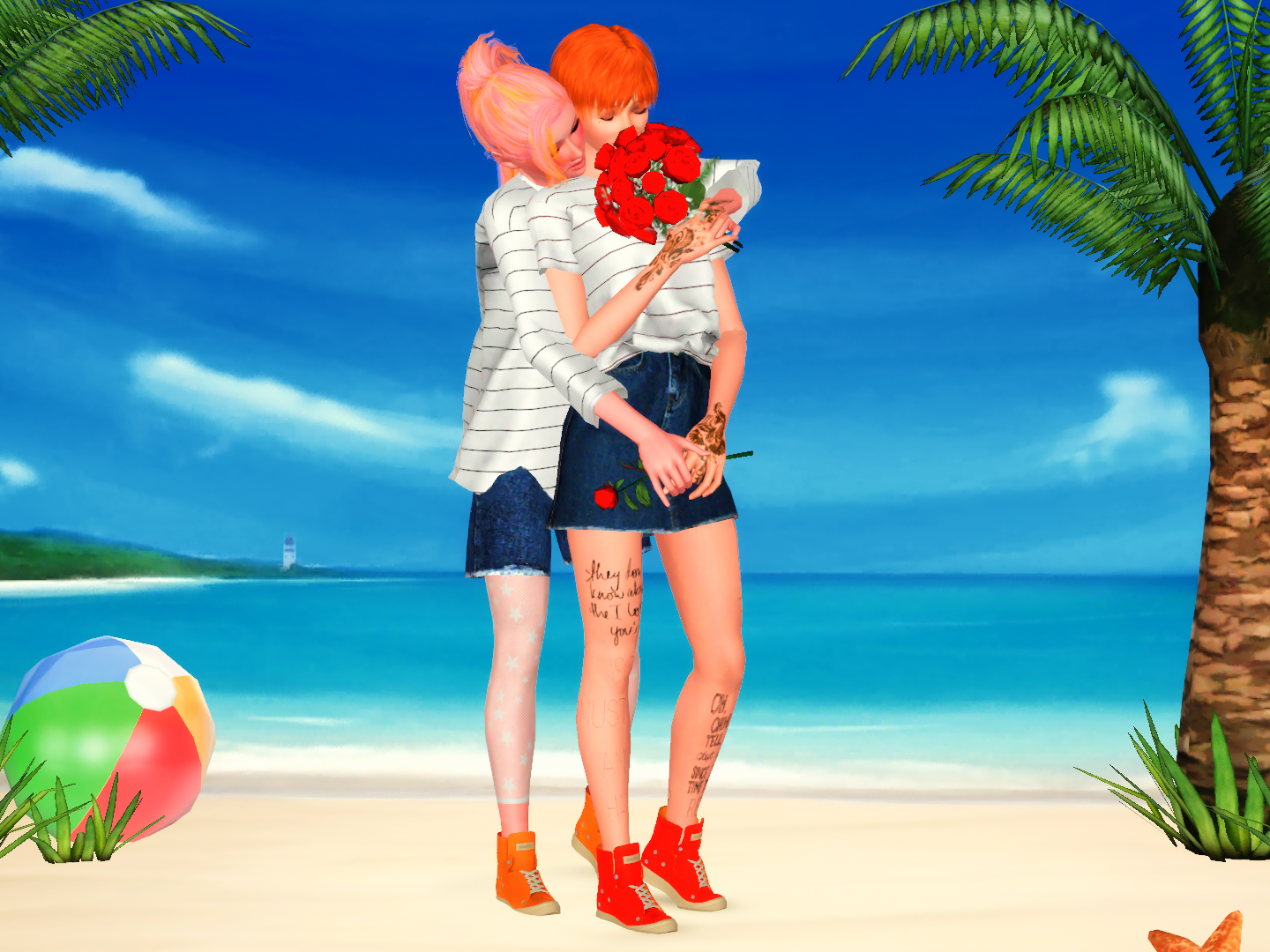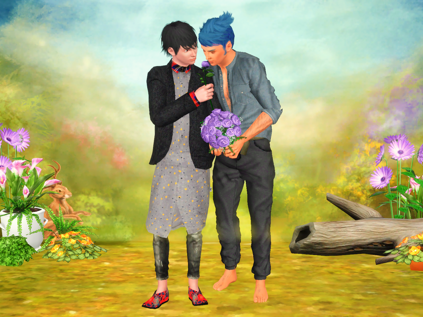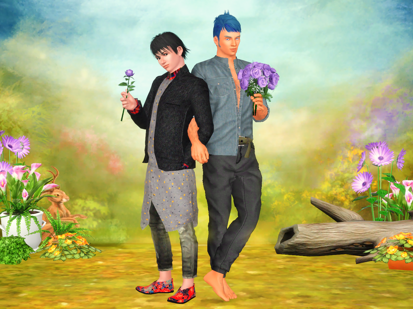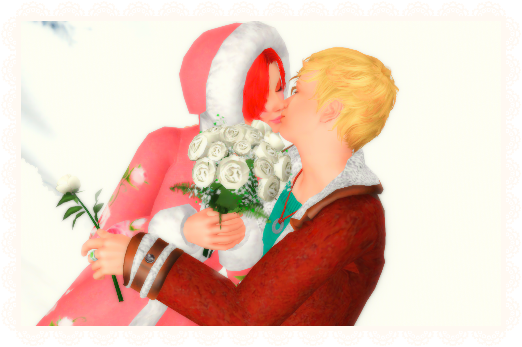 シムズ2の“デート報酬”のバラの花束のTS3への変換を見つけたのでアクセサリーに変換させていただきました♡
